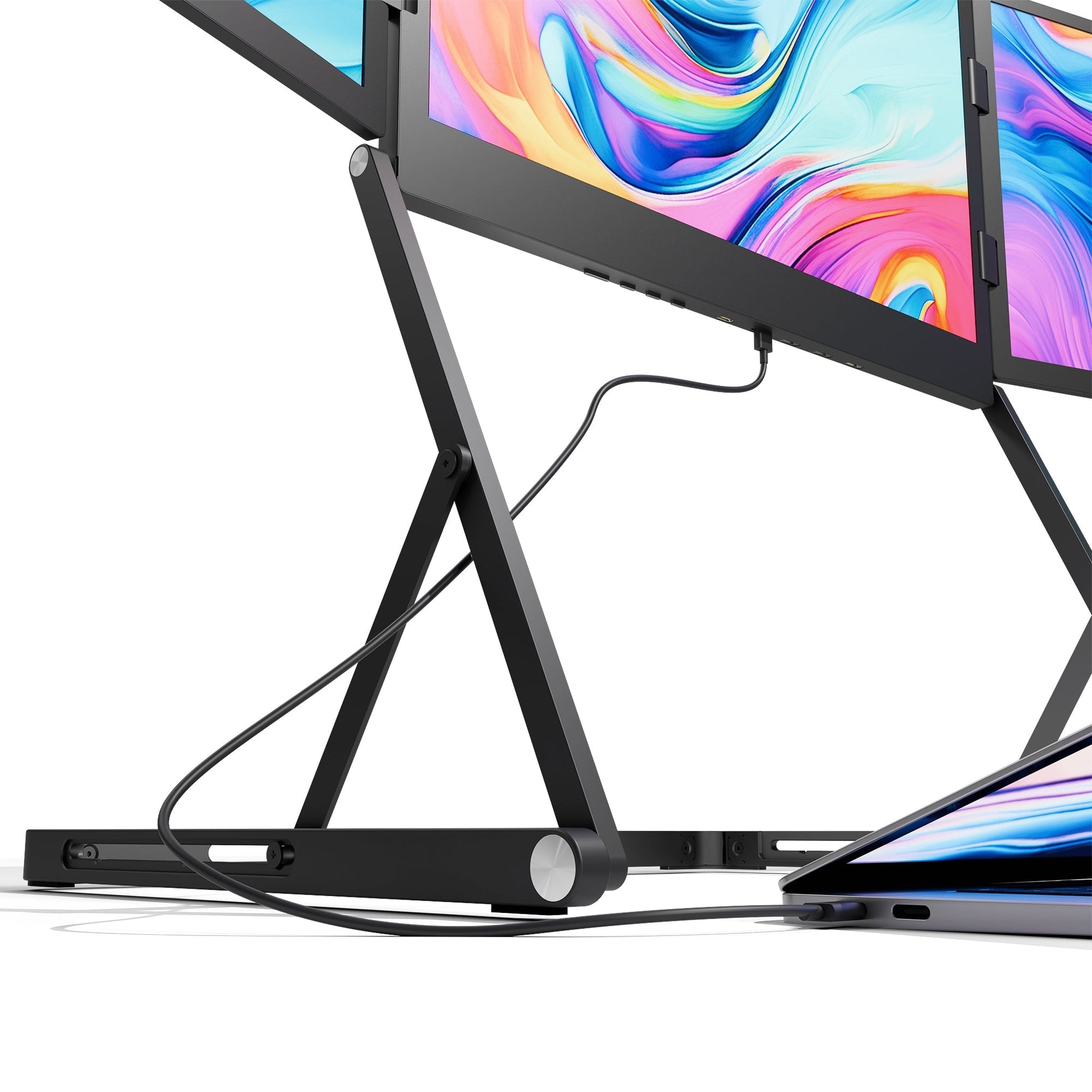 - True tri-monitor functionality in a single foldable unit
